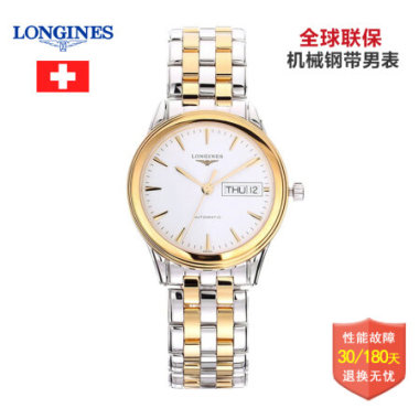 全球购 浪琴(Longines)手表 军旗系列机械钢带白盘男