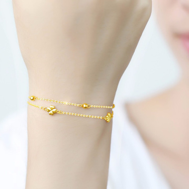 倾爱 黄金手链女18k金四叶幸运草时尚细款手链送女友生日表白